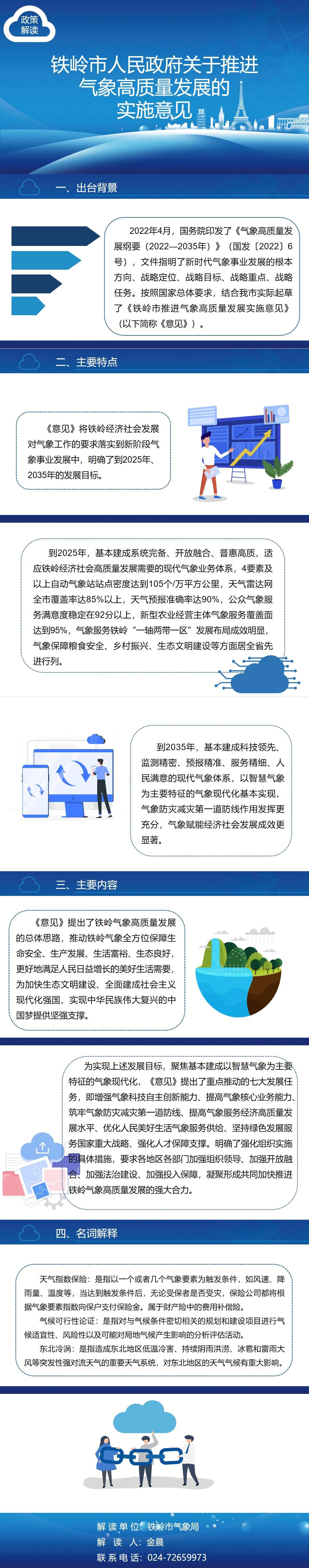 2022年4月,国务院印发了《气象高质量发展纲要(2022—2035年)》(国发〔2022〕6号),文件指明了新时代气象事业发展的根本方向、战略定位、战略目标、战略重点、战略任务。按照国家总体要求,结合我市实际起草了《铁岭市推进气象高质量发展实施意见》(以下简称《意见》)。